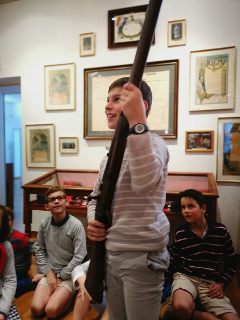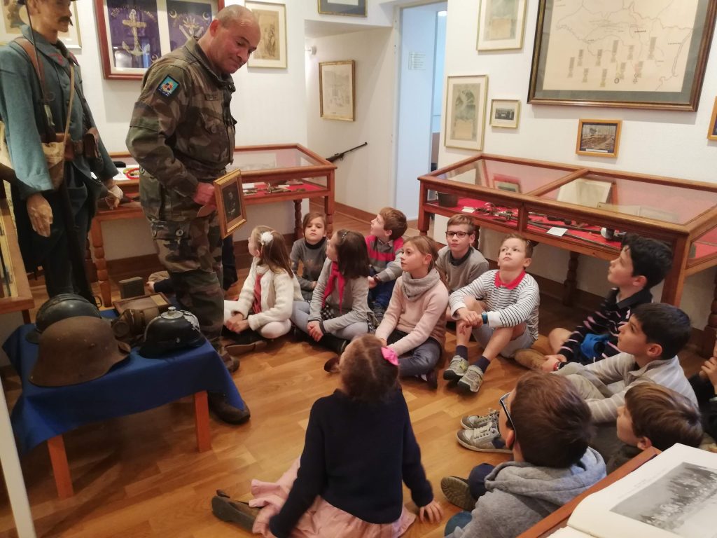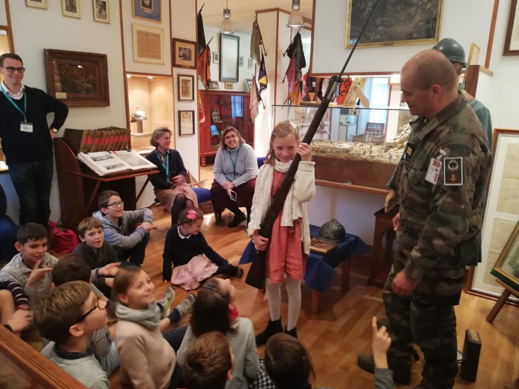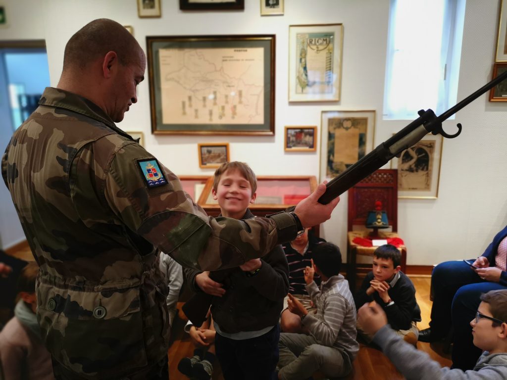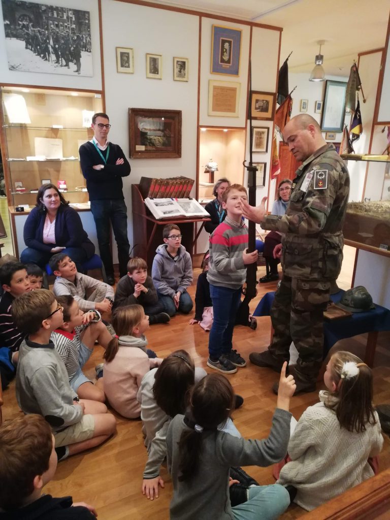 Lundi 12 novembre après-midi, dans le cadre du centenaire de l’armistice de 1918, la classe de CM1-CM2, a visité la salle d’honneur du Régiment d’Infanterie Chars de Marine (RICM) à Poitiers. Nos élèves ont pu découvrir l’histoire du régiment depuis 1915 jusqu’à nos jours et ainsi approfondir et comprendre l’histoire de la Grande Guerre. Ce véritable « musée » renferme de magnifiques vitrines, de fabuleuses maquettes et objets de collection ainsi que de nombreux souvenirs historiques témoignant de la vie des hommes qui se sont battus pour notre pays.
